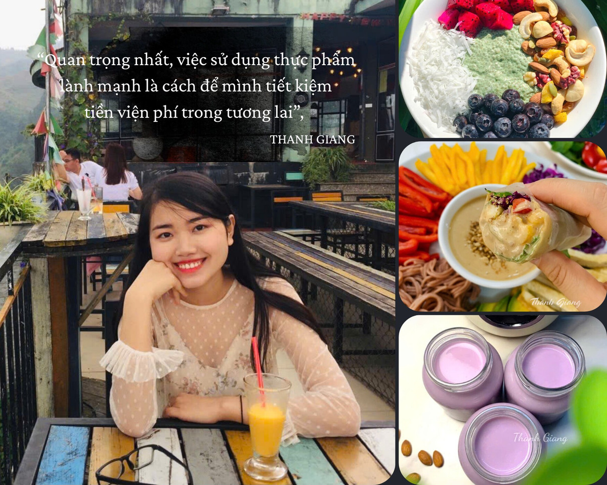 Mỗi bữa ăn thuần thực vật như của Giang không chỉ ngon mà còn có giá cả phải chăng. Đặc biệt là tự nấu nên cô có thể thích gì ăn đó, mỗi bữa dao động từ 20-40 nghìn đồng/người. “Quan trọng nhất, việc sử dụng thực phẩm lành mạnh là cách để mình tiết kiệm tiền viện phí trong tương lai”, cô chia sẻ.