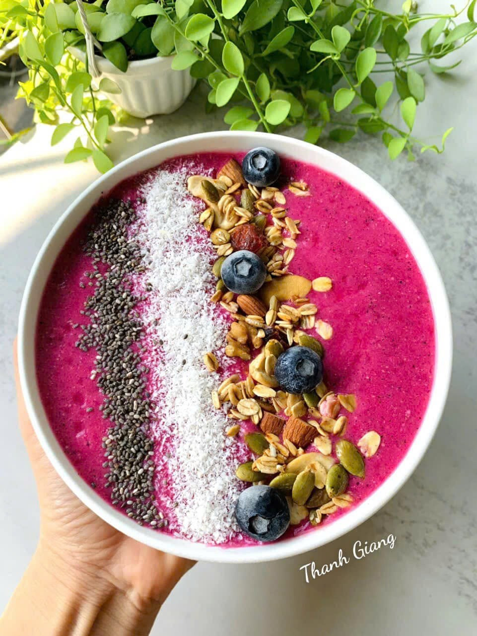 Để làm các món thuần thực vật không bị nhàm chán, Giang đã thay đổi nhiều công thức khác nhau và vị khác nhau. Chẳng hạn, thứ 2 ăn sinh tố cải xoăn thì thứ 3 ăn sinh tố việt quất, thứ 4 là sinh tố dâu tây; thứ 2 ăn ngũ cốc diêm mạch thì thứ 3 ăn kiều mạch, thứ 4 ăn yến mạch,… Nhờ vậy, các bữa thuần thực vật của 9X luôn đa dạng, phong phú, đặc biệt khoa học và giàu dinh dưỡng.