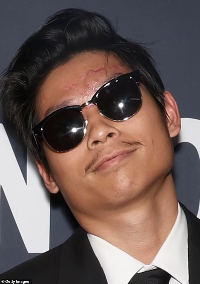 Trên thảm đỏ, nữ minh tinh diện váy đen ôm sát dáng đuôi cá đầy quyến rũ trong khi cậu con trai nuôi gốc Việt của cô ăn mặc lịch lãm với bộ vest đen, đeo cặp kính râm lớn che quá nửa khuôn mặt. Điều đáng chú ý là những vết sẹo lớn trên trán kéo dài xuống sống mũi của Pax Thiên. Dễ dàng đoán được đây chính là di chứng để lại của vụ tai nạn giao thông hơn 1 tháng trước.