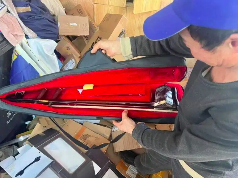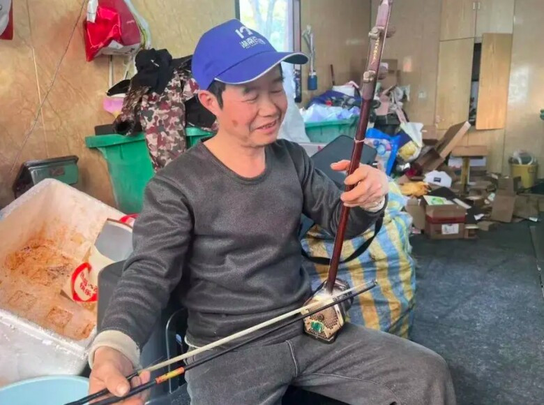 Trong căn phòng lộn xộn của trạm rác, ông Lu ngồi giữa đống đồ đạc. Góc nhỏ nơi ông chơi đàn được sắp xếp gọn gàng, có cả chỗ ngồi và tủ gỗ riêng để cất đàn. Cây đàn nhị 600 tệ (2,1 triệu đồng) đã theo ông suốt 10 năm. Ông thích nhất là bài "Đồng cỏ Hulunbuir".