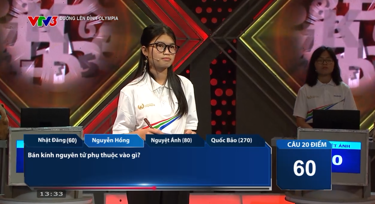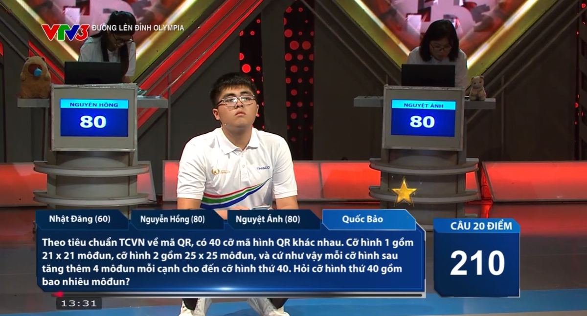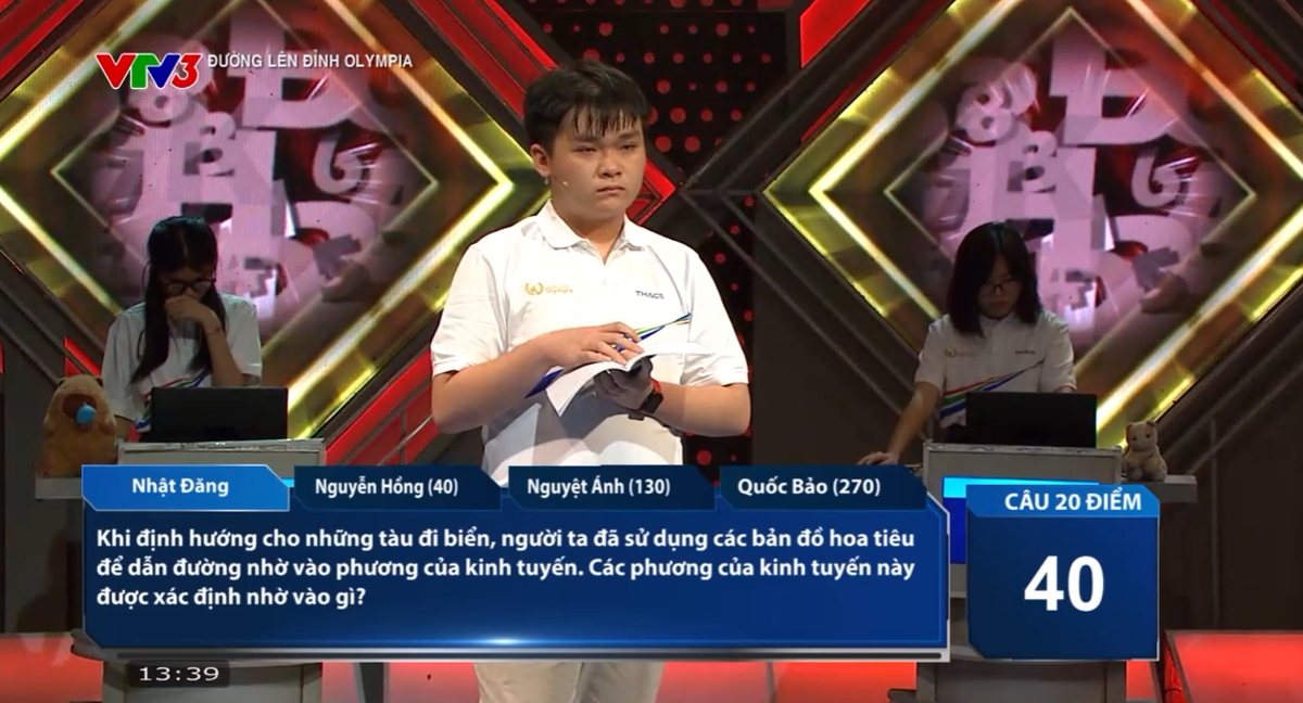 Đúng 13h ngày 4/5, cuộc thi tuần 3 tháng 1 quý 3 Đường lên đỉnh Olympia 2025 đã diễn ra với sự tham gia của 4 nhà leo núi: Trần Lê Nhật Đăng (TH THCS THPT Việt Úc - TP HCM), Nguyễn Thị Hồng (THPT Lê Văn Thịnh - Bắc Ninh), Nguyễn Hoàng Nguyệt Ánh (THPT chuyên Nguyễn Trãi - Hải Dương) và Đặng Quốc Bảo (THPT chuyên Phan Bội Châu - Nghệ An).
