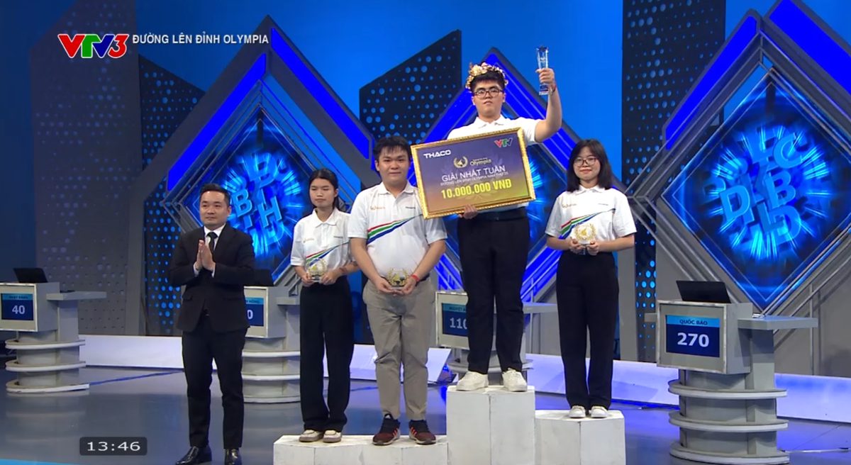 Như vậy, danh sách 4 gương mặt của cuộc thi tháng 1 quý 3 Olympia 2025 đã được xác định là: Đỗ Xuân Thái (THPT Phan Đình Phùng - Hà Nội), Lê Hoàng Trân Châu (THPT chuyên Lê Quý Đôn - Quảng Trị), Đặng Quốc Bảo (THPT chuyên Phan Bội Châu - Nghệ An) và Nguyễn Hoàng Hải (THPT chuyên Hoàng Văn Thụ - Hòa Bình).