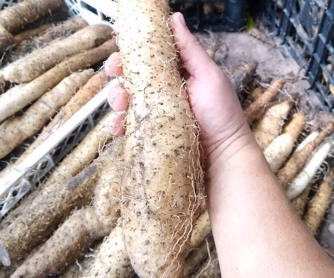 Củ mài dài cả mét, trước đây chúng mọc dại ở trong rừng, nay được người dân mang về trồng trong vườn nhà để bán ra thị trường