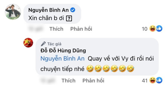 Khi Bình An tới xin một chân đá bóng cùng Hùng Dũng, cầu thủ quốc gia nổi tiếng này đã đáp một cách phũ phàng: "Quay về với Vy đi rồi nói chuyện tiếp nhé".