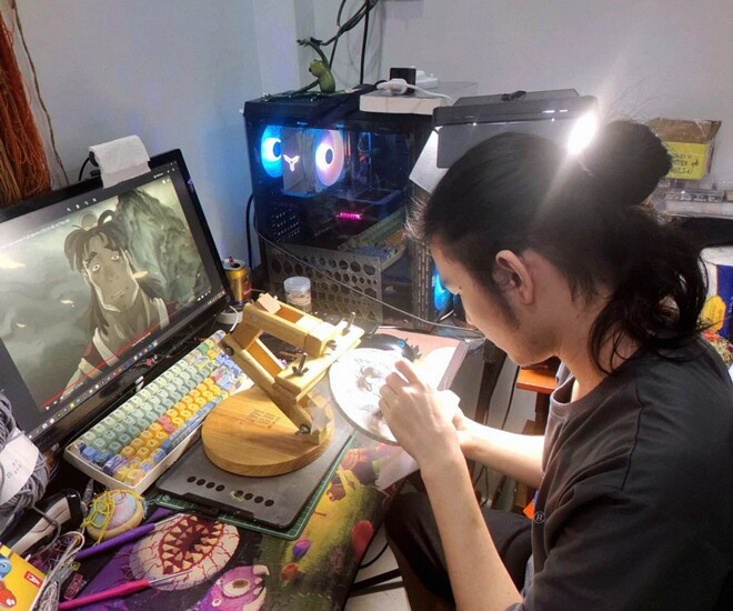 Chàng trai sinh năm 2000 tâm sự thêm: “Với mình, thêu tay là cách vẽ nên những tác phẩm nghệ thuật bằng đường kim, mũi chỉ. Tôi yêu thích công việc này bởi nó giúp tôi thỏa mãn, theo đuổi đam mê, sáng tạo những tác phẩm mình yêu thích. Hạnh phúc hơn, công việc này còn giúp tôi có được thu nhập tốt từ chính đam mê của mình”.