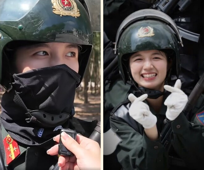 Trong buổi phỏng vấn của VTV với các chiến sĩ thuộc khối Nữ chiến sĩ Cảnh sát đặc nhiệm, có một cô gái đã “gây bão” nhờ khoảnh khắc vô tình rớt khẩu trang khi đang trả lời phỏng vấn, giúp cộng đồng mạng được chiêm ngưỡng nhan sắc quá đỗi đáng yêu và nụ cười tỏa nắng sau lớp khẩu trang “ngầu đét”.