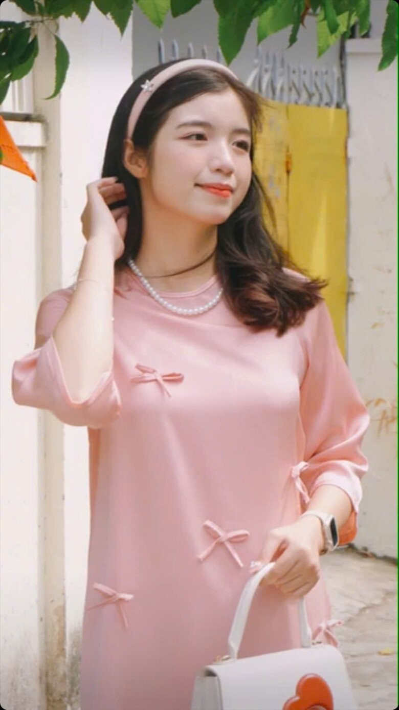 Trong các bức ảnh được Bảo Chinh chia sẻ, phong cách thường ngày của cô nàng khá nữ tính với các thiết kế đầm, áo dài đính nơ