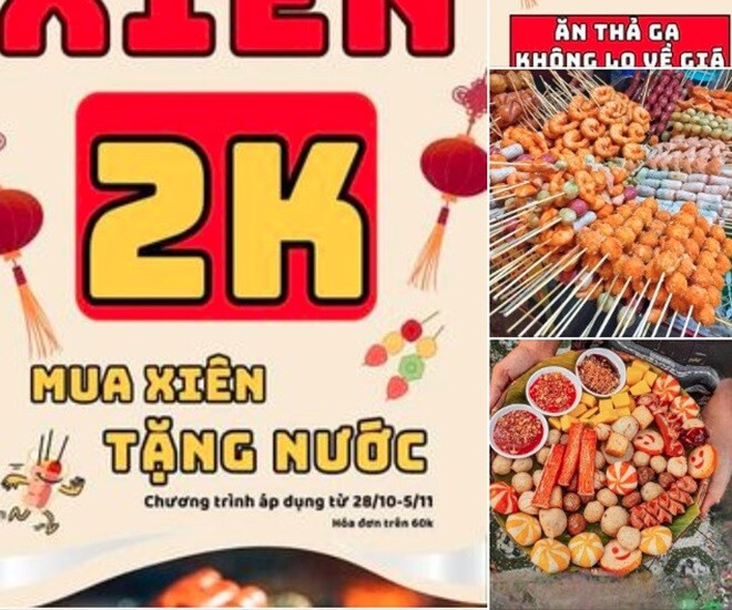 Các loại xiên bẩn giá 2k được quảng cáo rất nhiều, thậm chí giá rẻ còn kèm theo khuyến mại. Ảnh minh họa.