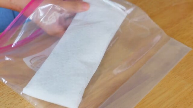 - Lấy 2 mảnh khăn giấy và bọc một nắm phần màu xanh lá cây trong đó. Đặt chúng trong một túi ziploc lớn. Đẩy không khí ra khỏi túi ziploc và đóng mép túi lại.