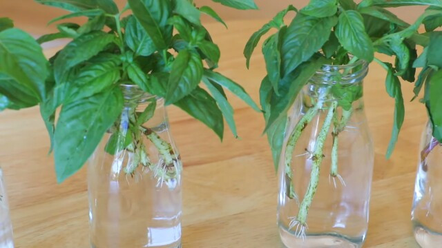 Cắt các ngọn húng quế có chiều dài khoảng 8 - 12 cm. Sau đó, cắm chúng vào một ly nước sạch và đặt ly này ở vị trí có ánh sáng mặt trời, chẳng hạn như bên cửa sổ. Hãy nhớ thay nước hàng ngày để đảm bảo độ tươi của rau.