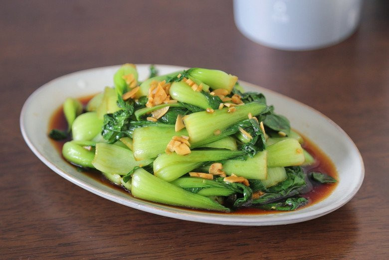 300g cải chíp, 1 muỗng canh dầu hào, 1 muỗng cà phê nước tương, 2 thìa tỏi băm, một ít muối.