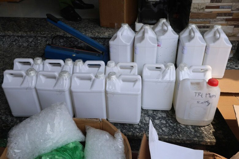 Đối tượng cũng tự trang bị máy móc, công cụ, chai lọ, bao bì, tiến hành pha trộn, đóng gói và hoàn thiện sản phẩm ngay tại nhà riêng. Các sản phẩm giả này sau đó được đưa lên Shopee, TikTok để quảng cáo, bán hàng.