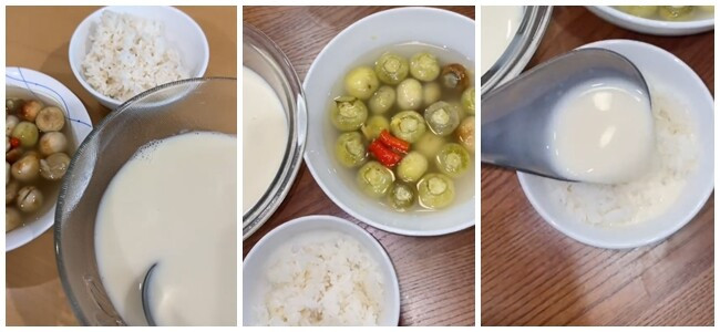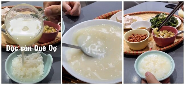 (Cơm chan nước đậu phổ biến ở một số nơi ỏ miền Bắc, nguồn tiktok: @ketoannhabep, @mokhoethanoi).