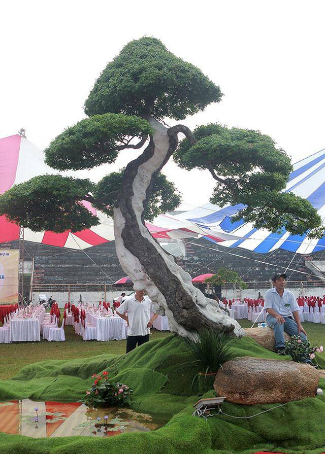 Điển hình nhất là bonsai me keo xuất hiện ở một triển lãm cây cảnh tại Phú Thọ. Chủ nhân cây cảnh anh Trần Phúc Lộc (Bà Rịa, Vũng Tàu), mang tác phẩm "khủng" từ miền Nam ra miền Bắc để trưng bày.