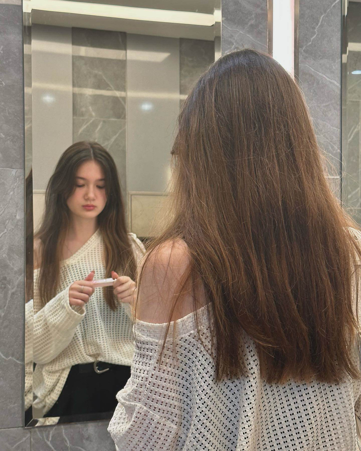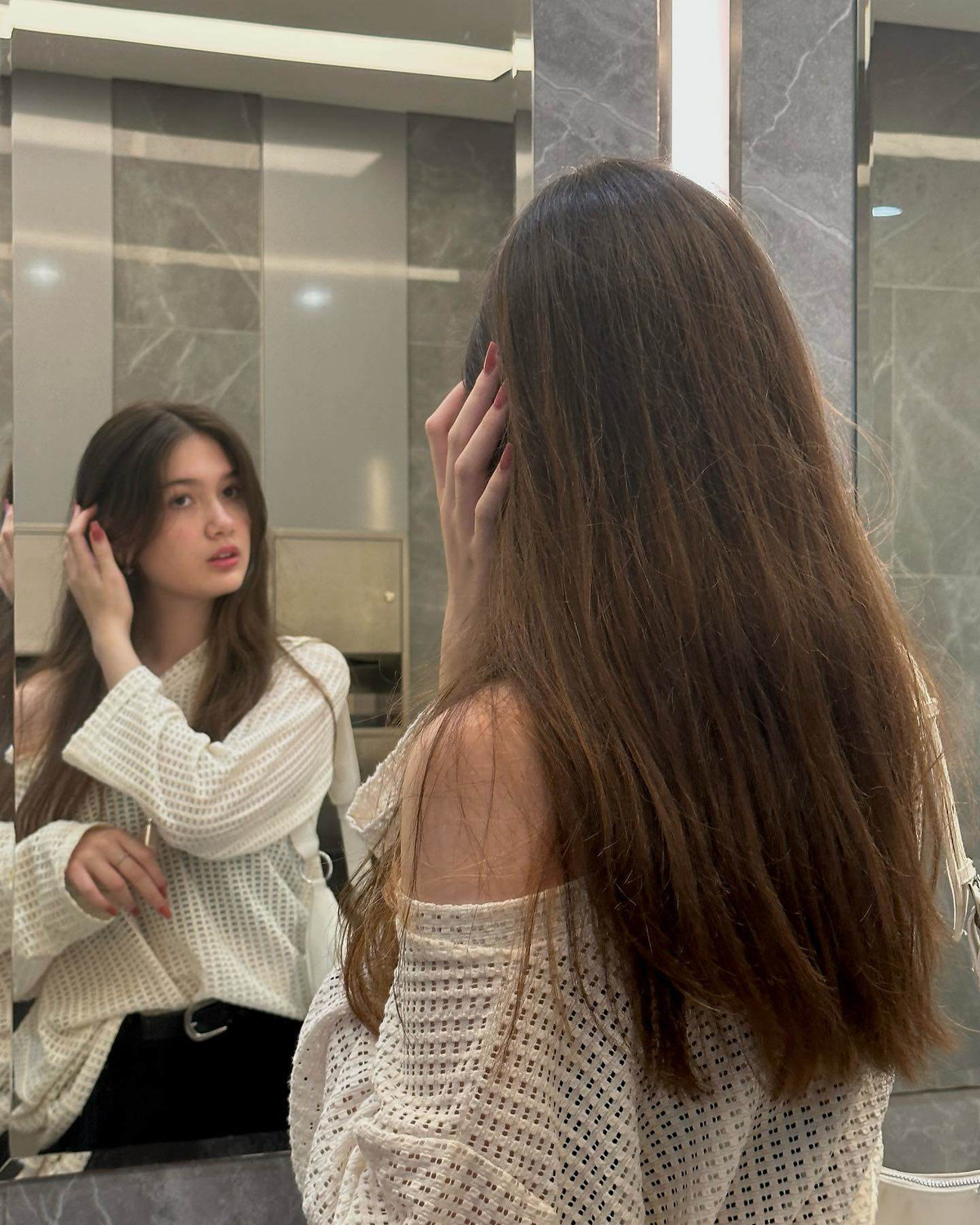 Những khoảnh khắc tô son, chỉnh tóc ngẫu hứng của cô nàng không cần chỉnh sửa cũng đủ khiến bao người trầm trồ vì quá đẹp chẳng hề kém cạnh mẫu ảnh nào.