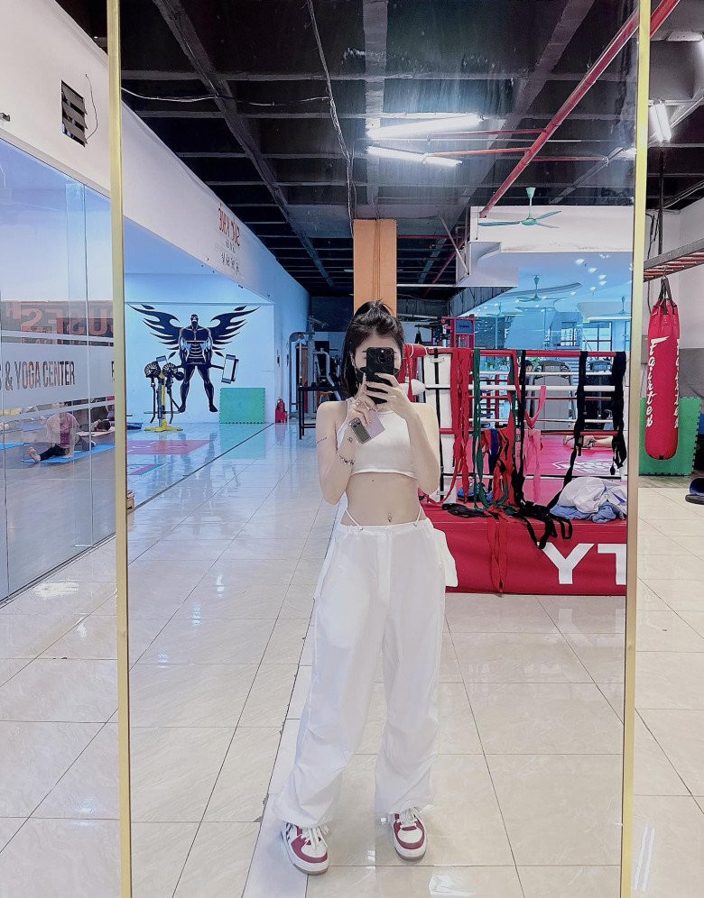 Để có được ngoại hình mảnh mai, vòng nào ra vòng nấy quyến rũ, Nguyễn Thị Nụ cũng dành nhiều thời gian đến phòng gym. Đây cũng là bí quyết siết cân, giữ dáng khá phổ biến của hội gái xinh thời hiện đại.