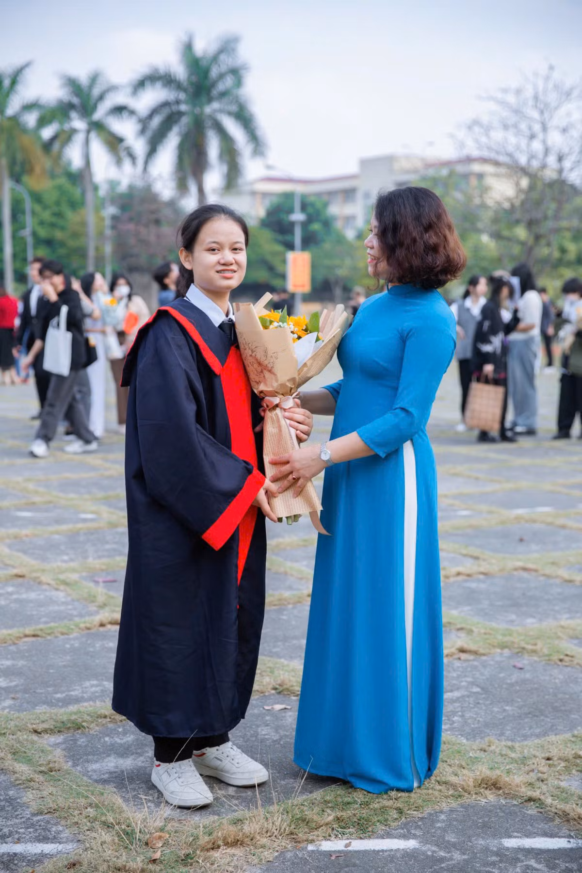 Đỗ Thị Vân Hà cùng mẹ trong buổi chụp ảnh kỷ yếu