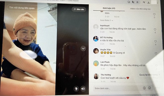 Đoạn video Quang rửa tay cho mẹ thu hút gần 34 ngàn lượt người xem.