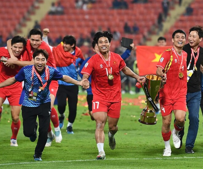 Tối qua, cổ động viên nước nhà có thể tự hào hô vang “Việt Nam vô địch” khi đội tuyển bóng đá Quốc gia đã chiến thắng trước đội tuyển Thái Lan với tỷ số 3-2 trong trận Chung kết lượt về và giành chiếc cúp của ASEAN Cup 2024 (AFF Cup). Trong trận đấu đầy kịch tính kéo dài 110 phút, với thế trận đầy bất lợi khi cầu thủ Nguyễn Xuân Son gặp chấn thương nặng, phải rời sân ở phút 32, đội tuyển Việt Nam vẫn giữ vững tinh thần và thi đấu hết mình.