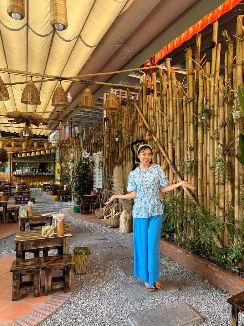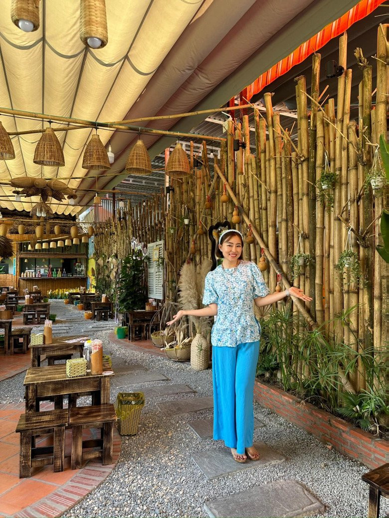Cô nàng trực tiếp đứng quầy, không ngần ngại “phục vụ” các thượng đế. Cô cũng dành thời gian chơi Tiktok, quảng bá các đặc sản quê hương đến bạn bè trong nước và quốc tế. Và điểm tạo nên ấn tượng trong các video chính là hình ảnh cô gái miền Tây dịu dàng mặc chiếc áo bà ba, cổ và tay đeo rất nhiều vàng – phong cách xưa của Kiều Duyên.