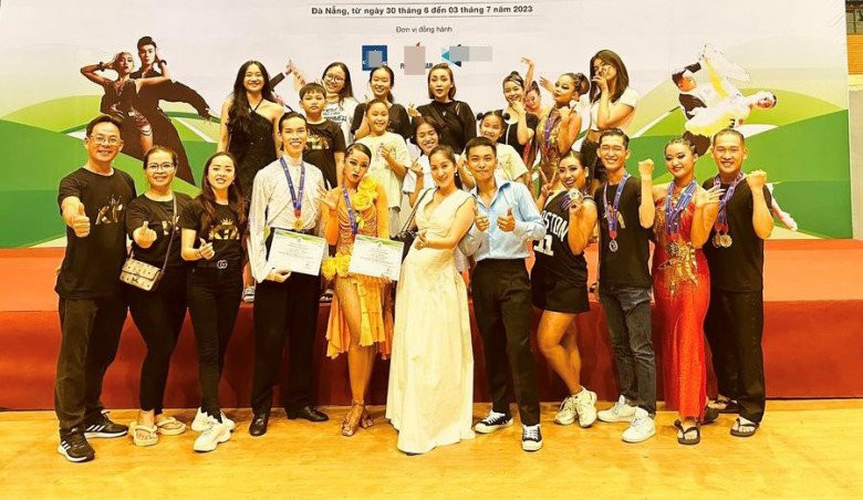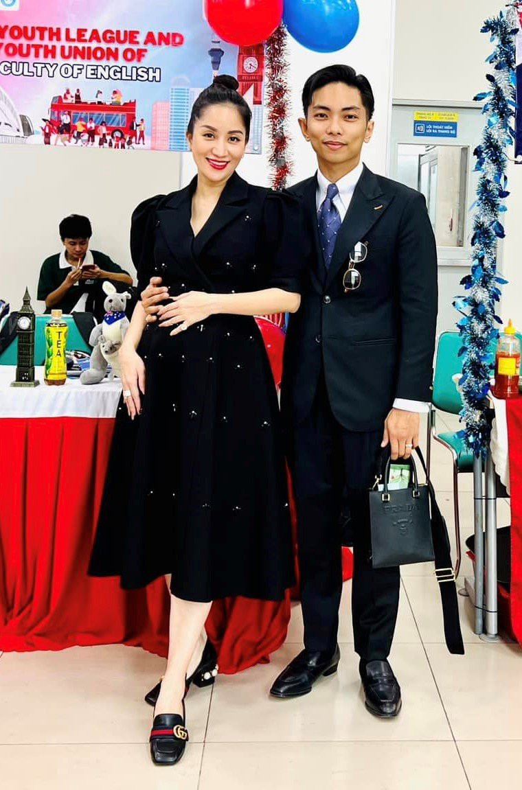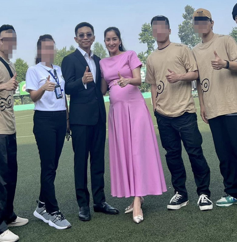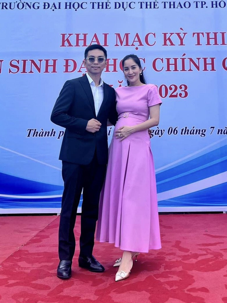 Mới đây, bà xã Phan Hiển vừa xuất hiện tại Lễ khai mạc kỳ thi thể thao tại TP.HCM cùng ông xã với thiết kế hồng xinh xắn.