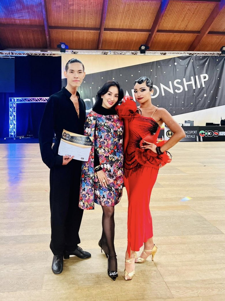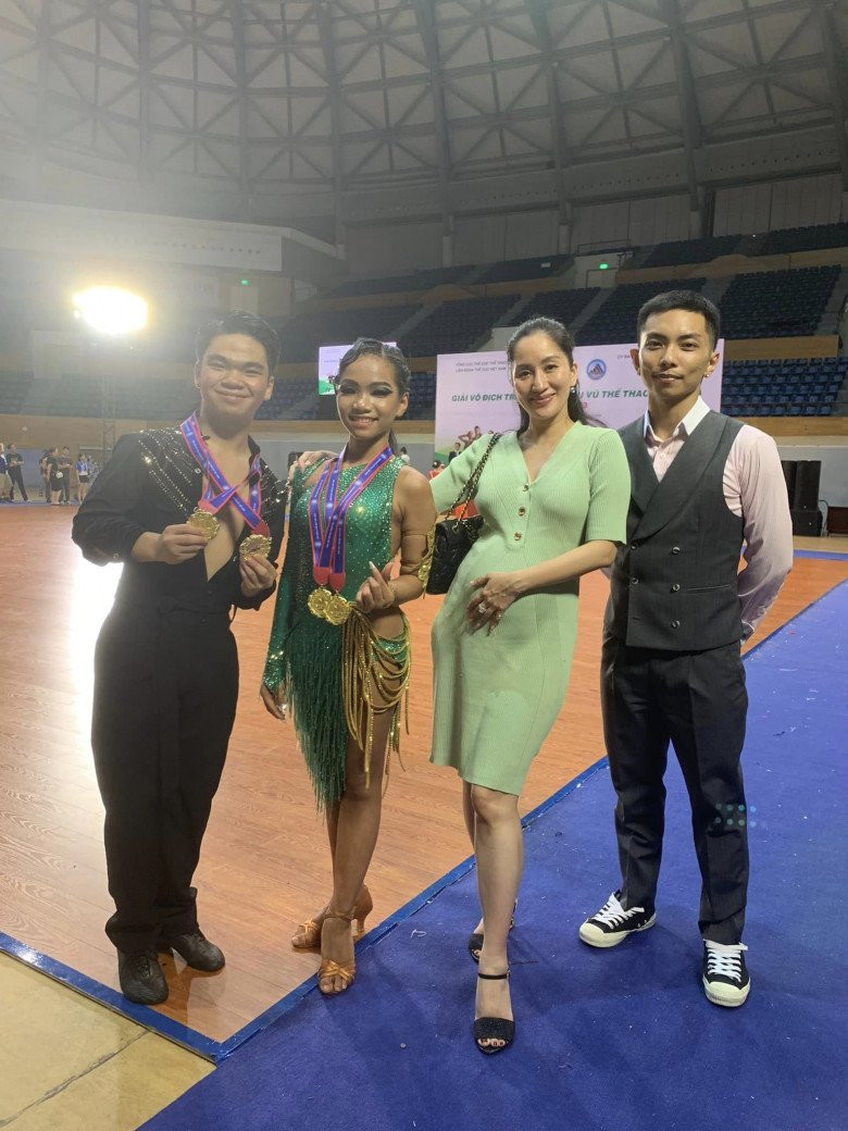 Kiện tướng dancesport bắt đầu tăng cân từ tháng thứ tư. Do đó, cô yêu thích những bộ váy xòe dáng công chúa để che vòng hai ngày một lớn dần, đồng thời tôn lên nét trẻ trung, nữ tính và điệu đà.