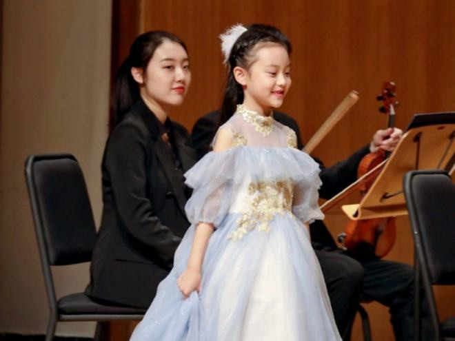 Cô bé có không ít lần trình diễn trên sân khấu.