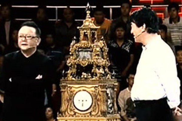 Các chuyên gia giám định kho báu vừa bước lên sân khấu đã quay chiếc đồng hồ lớn vài vòng, sau đó tụ tập xung quanh thảo luận với vẻ mặt rất thích thú.