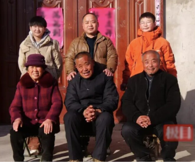 Lu Zhenyu (ngồi giữa) chụp ảnh cùng gia đình ngày đoàn tụ.