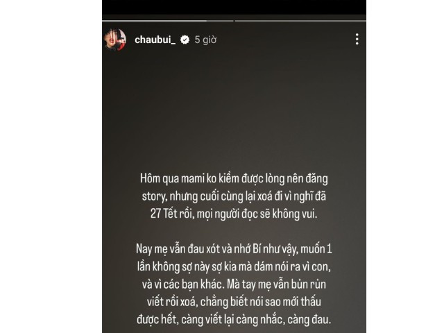Tuy nhiên, bài viết này nhanh chóng được Châu Bùi xóa đi do không muốn làm ảnh hưởng tâm trạng của mọi người những ngày cận Tết.