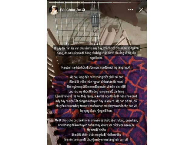 Ngày 27 Tết (6/2), trên trang Instagram cá nhân, Châu Bùi nghẹn ngào chia sẻ chuyện cún cưng gặp tai nạn trên chuyến bay về Hà Nội.