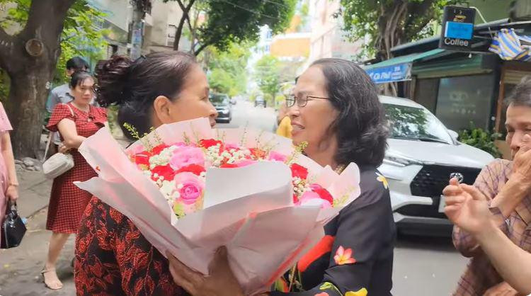 Cô Nhung tặng chị gái bó hoa ngày gặp lại sau 60 năm xa cách.