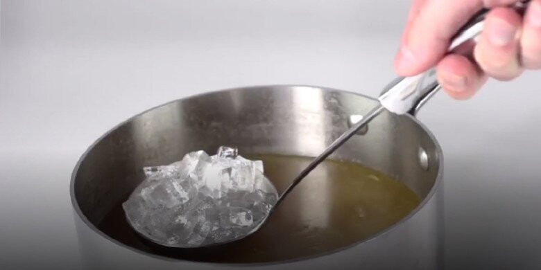 Canh ngon nhưng lớp váng mỡ nổi lên khiến nhiều người e ngại? Đừng lo, chỉ cần một chiếc muôi lớn và vài viên đá lạnh. Múc đá vào muôi, nhẹ nhàng lướt trên mặt nước canh, bạn sẽ thấy lớp mỡ nhanh chóng đông lại và bám vào đáy muôi. Vài thao tác đơn giản, nồi canh trở nên trong vắt mà vẫn giữ nguyên hương vị thơm ngon.