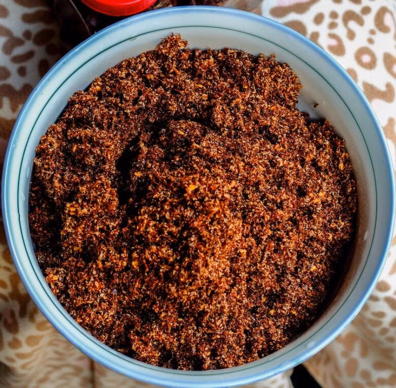 Đu đủ xanh được gọt vỏ, băm nhỏ, sau đó giã cùng muối, ớt và cuối cùng là kiến vàng. Món ăn này mang đến hương vị chua chua của kiến, cay nồng của ớt và độ giòn của đu đủ.