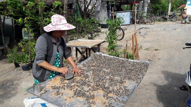 "Lía mua về ngâm nước một đêm rồi rửa sạch, để ráo nước, sau đó ướp muối với bột ngọt và ớt chừng 2 giờ đồng hồ, đem phơi nắng 3 tiếng là có thể ăn được. Thịt lía vốn rất giàu chất protein, chất béo, chất khoáng… Khi phơi nắng, nước đọng lại trong vỏ rất ngọt và thịt rất béo", chị Loan chia sẻ cách làm món lía phơi.