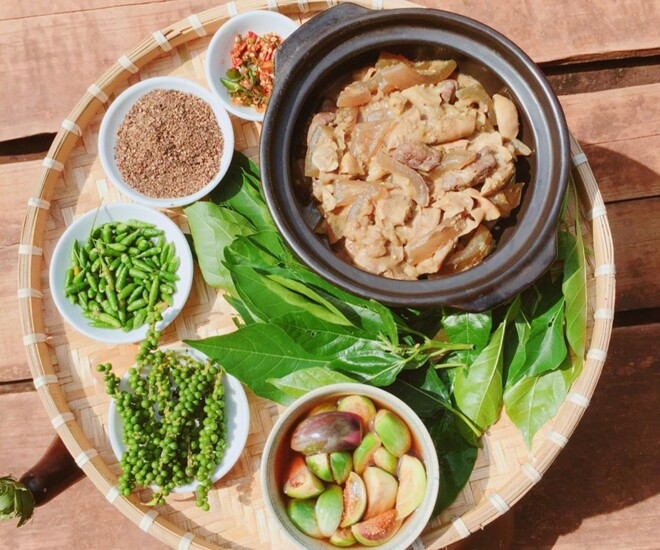 Các phần nội tạng khác như da, đuôi, thịt bạc nhạc, mép bò… được luộc sơ, cắt miếng và nấu cùng với gia vị đặc biệt chế biến từ vếch. Ngoài ra, món ăn còn được nêm nếm với nhiều gia vị khác như ớt, củ nén, sả, riềng, tiêu rừng, hạt cây rừng để tạo nên hương vị đậm đà, hấp dẫn.
