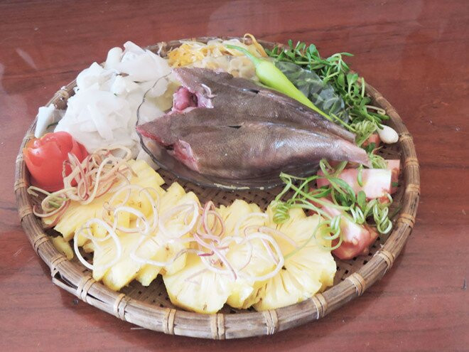 Sau đó người dân phi thơm hành, cho cá vào rim trước rồi mới cho tiếp thơm, khế, cà... rồi đổ nước đã đun sôi vào. Nước canh sôi, tiếp tục cho các loại rau thơm vào để tạo hương vị quyến rũ cho nồi canh rồi tắt bếp. Vị của cá bùng binh trong nước canh vừa chua thanh vừa đọng ngọt, đảm bảo ai ăn thử đều thích mê mẩn.