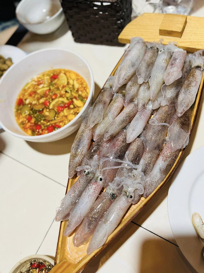 Mực nháy là một đặc trưng của vùng biển Cửa Lò, mắt và những đốm trên thân ánh lên những mảng màu lấp lánh.