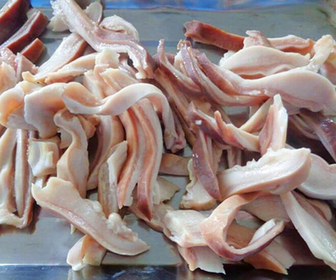 Từ dạ dày lợn có thể làm thành nhiều món ngon, nhất là món nộm. Thế nhưng, công đoạn làm sạch dạ dày khá kỳ công nên nhiều người e ngại", anh Thanh (ở chợ Phùng Khoang, Hà Nội) chia sẻ.