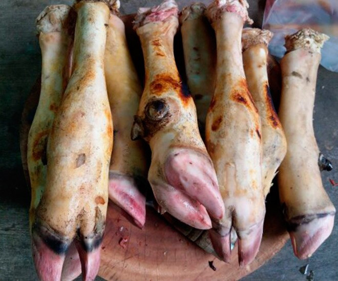 Bán thịt bò ở chợ Hà Nội , anh Khánh (40 tuổi) chia sẻ: "Vì một con bò chỉ có 4 chân nên tôi thường dành cho những khách đặt trước hoặc các nhà hàng đặt hàng trước. Chân bò làm thành các món hầm vừa ngon vừa bổ dưỡng".