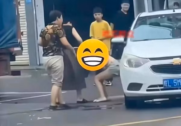 Người phụ nữ đập loạn xạ vào kính cửa xe và hét toáng lên. Sau khi mở được cửa xe và lôi cổ cô nhân tình ra ngoài, trên người cô gái trẻ chỉ còn nội y bên trên cùng một lớp áo mỏng manh. Trong khi đó, người chồng vẫn cố thủ trên xe, không dám ra ngoài, từ đầu tới cuối chỉ dám ngồi trong xe nhìn vợ và nhân tình ẩu đả.