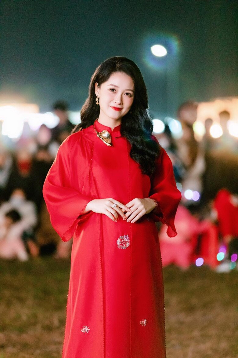 Những bộ áo dài suông giúp Thu Hà giấu dáng khéo léo.