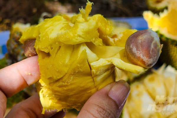 “Mít tố nữ hương sầu riêng có hương thơm, vị béo ngậy của sầu riêng. Đặc biệt loại mít này có múi không bị ướt như múi của quả sầu riêng hay múi mít tố nữ ở Việt Nam. Múi mít hương sầu riêng khô ráo”, anh chia sẻ. Đây cũng là nguyên nhân khiến giá loại mít này cao hơn nhiều loại mít khác trên thị trường.