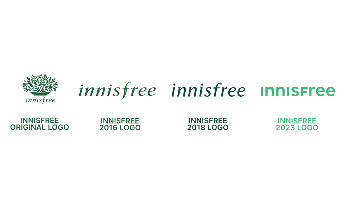 Logo INNISFREE mới với sắc xanh Active Green cùng lúc sử dụng font chữ viết hoa và viết thường tạo nên sự phá cách đầy mới mẻ
