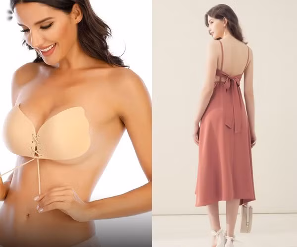 Để không bị đánh giá là kém duyên, chị em hãy lưu tâm đến việc lựa chọn nội y khi mặc váy áo hở lưng. Áo ngực dạng dán là gợi ý phù hợp.