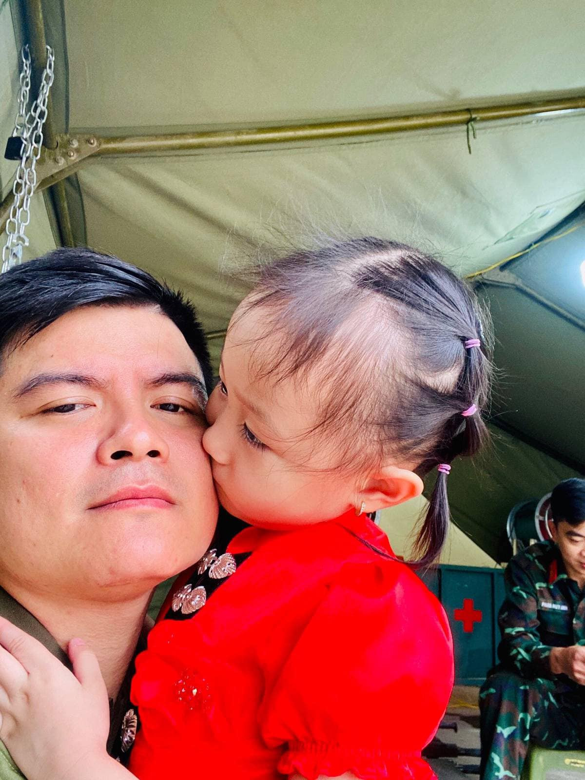 Theo những khoảnh khắc mà mẹ Vy Trâm ghi lại, có thể thấy tình cảm yêu mến đặc biệt mà bé dành cho các chiến sĩ. Đặc biệt là chú Long, chú Linh, chú Toàn, 3 chiến sĩ thực hiện nhiệm vụ tái hiện tượng đài Chiến thắng Điện Biên Phủ cùng với bé Vy Trâm.
