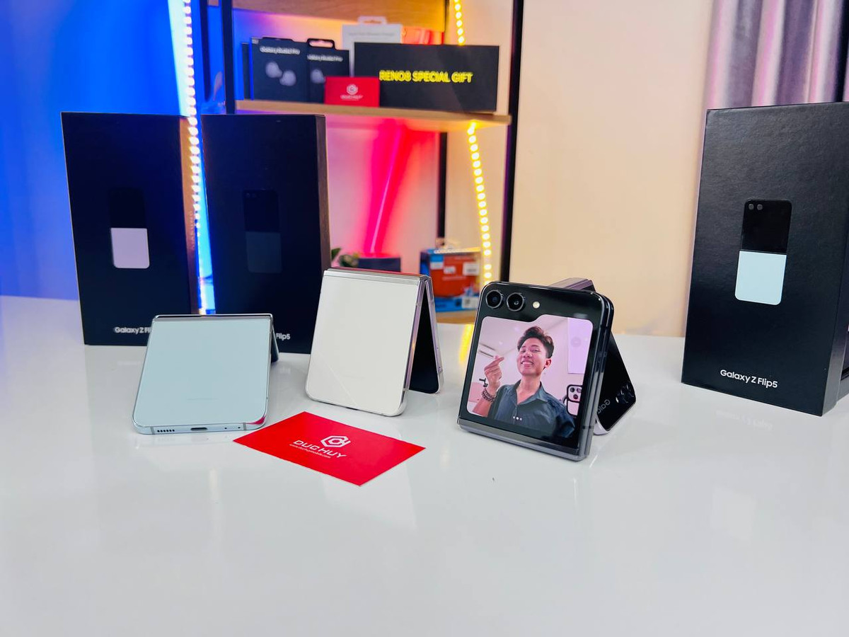 Ngoài ra Galaxy Z Flip5 còn có màn hình ngoài 3.4” với nhiều tiện ích: Xem thông báo, gửi tin nhắn, xem Youtube, xem bản đồ tiện lợi,... camera kép độ phân giải 12MP hỗ trợ chống rung quang học OIS xịn ở mặt lưng. Bên trong máy là chipset Snapdragon 8 Gen 2 for Galaxy, RAM 8GB cho hiệu năng siêu mạnh mẽ.