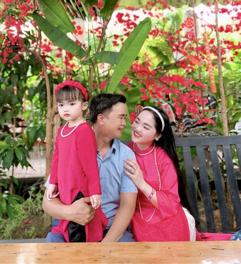 Chị Trần Thương bên gia đình.