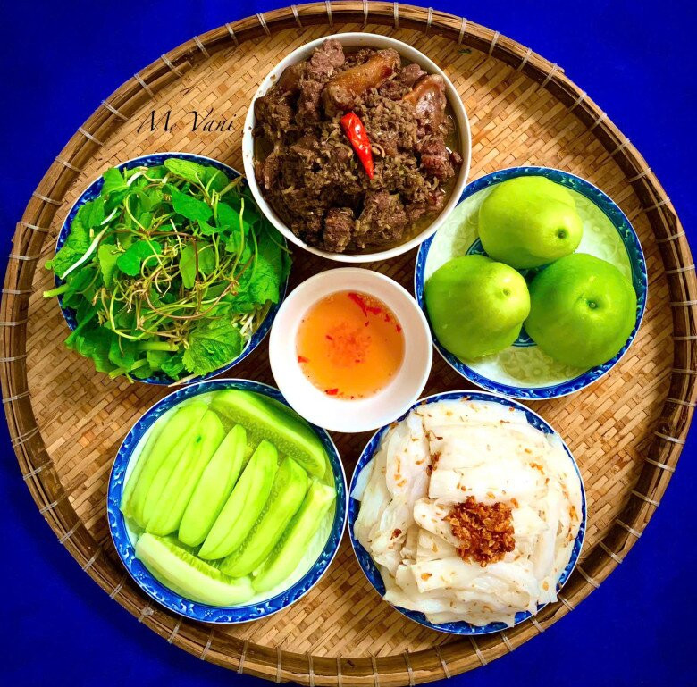 Ngan giả cầy ăn kèm bánh mướt.