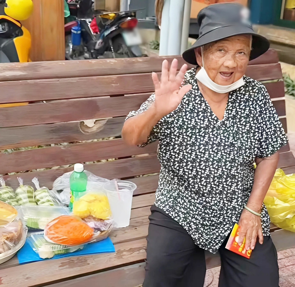 Bà cảm ơn món quà của chàng trai rồi vẫy tay chào